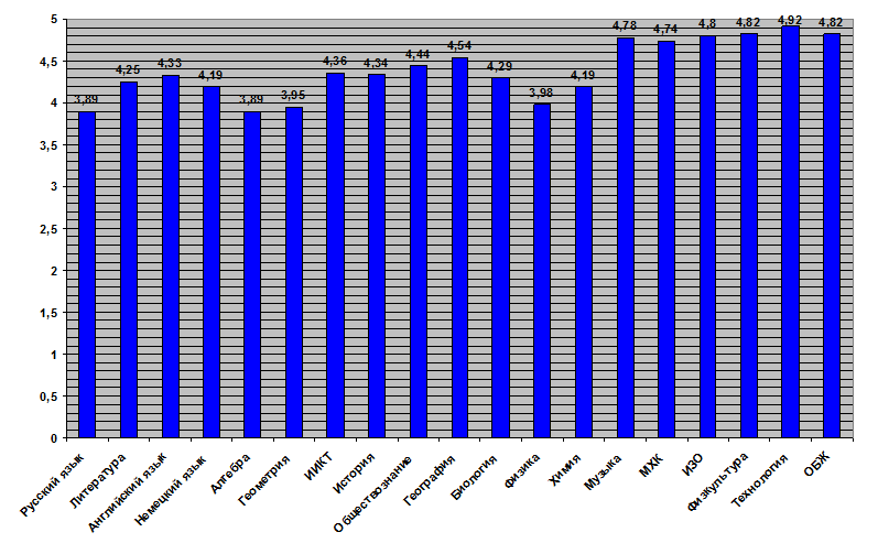 Качество образования по учебным предметам: |